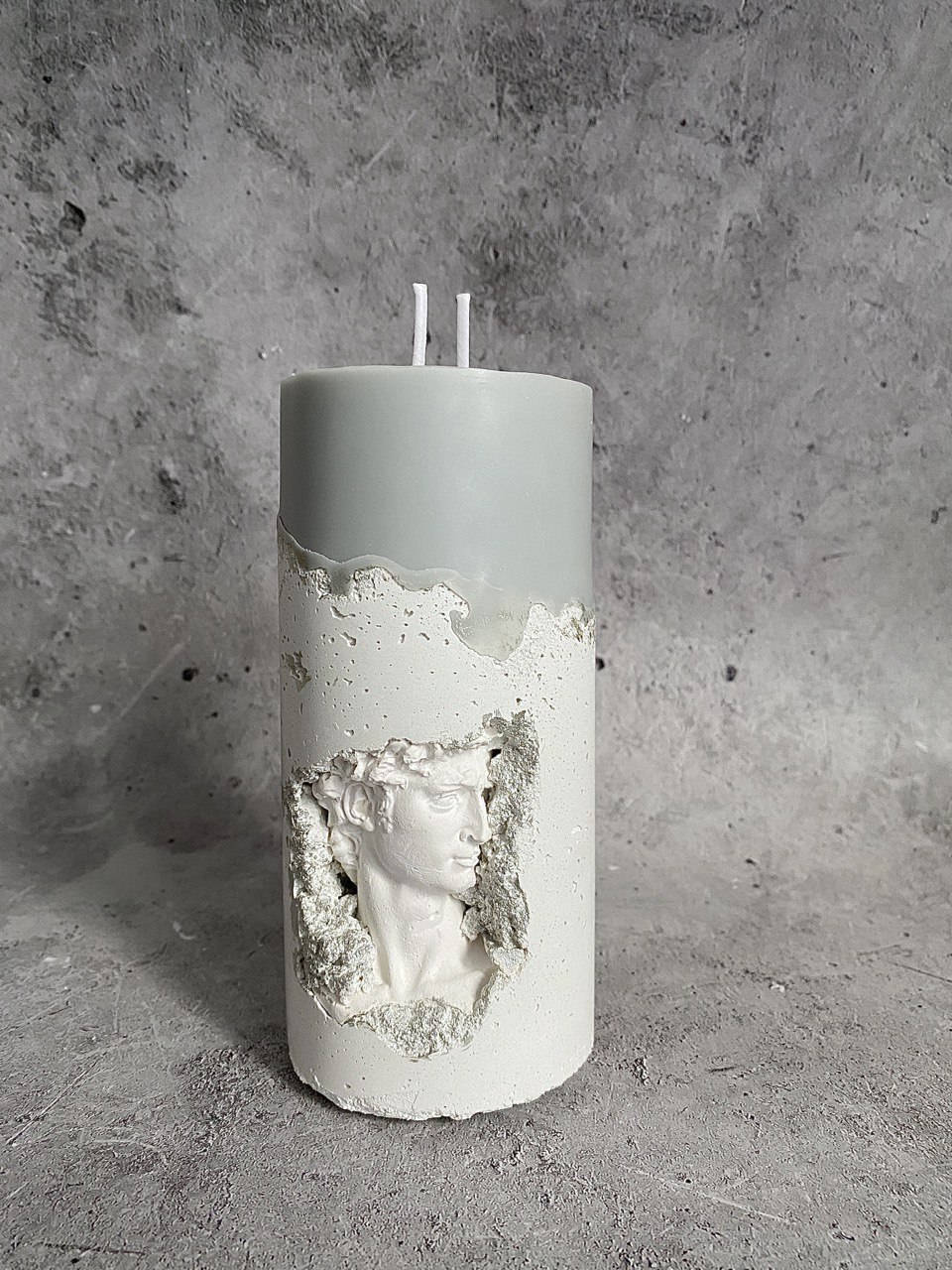 Бетонный подсвечник с грубой фактурой камня. Внутри – бюст античного Давида, Сочетание силы, мощи и вечной красоты античности в одном предмете. Искусство, которое вдохновляет.